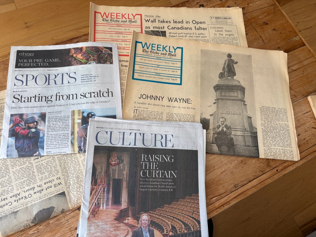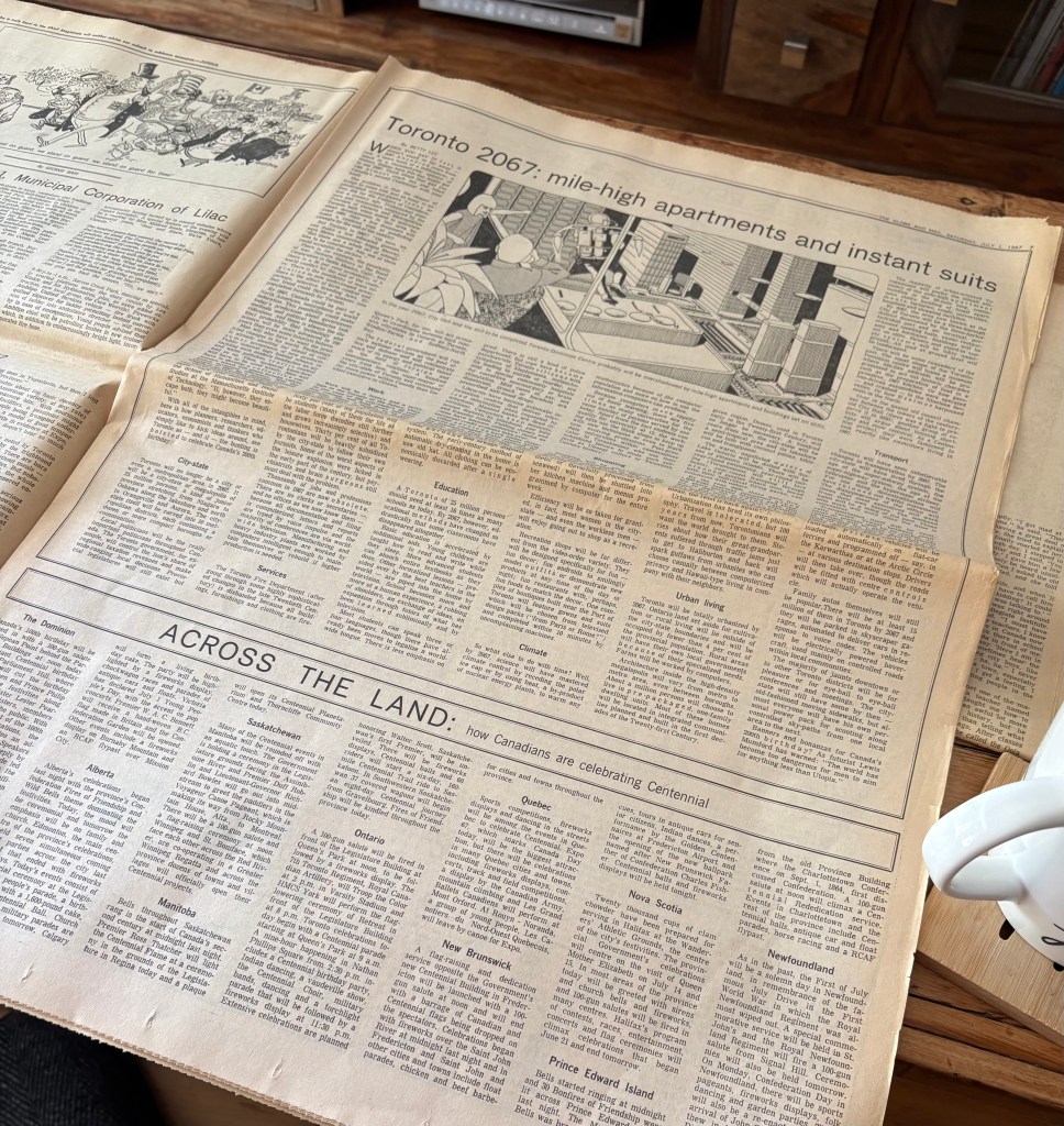 Even the surrounding stories reveal the priorities of a print-centred nation: a service at Westminster Abbey marking Canada’s birthday; theatre news about the O’Keefe Centre; Parliament stories laid out like civic inventory. The tactile rhythm of the paper – the slight crackle of newsprint, the faint acidy smell – gives a sense of occasion. The reader in 1967 was reading not just information, but ceremony.