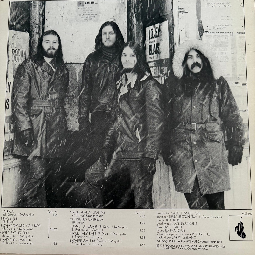 We didn’t know this was their debut album when we got it. We didn’t even know who these four guys – Bill Durst (guitar), Joe DeAngelis (lead vocals), Jim Corbett (Bass), and Ed Pranskus (drums) – were. But, the few tracks we did hear definitely caught our attention. On first inspection, we quickly picked up on the holepunch cut out in the top right corner – a tool to identify unsold copies shipped back to the distributor. This signified that the artist would receive no royalties from the copy and they could only be resold in bulk to record stores to put in the bins we so enjoy checking out. Too bad too, as we strongly believe this album deserved some royalties for this band once described as ‘the heaviest band in the world.’1 Judging by the picture on the LP, that wasn’t referring to body weight.